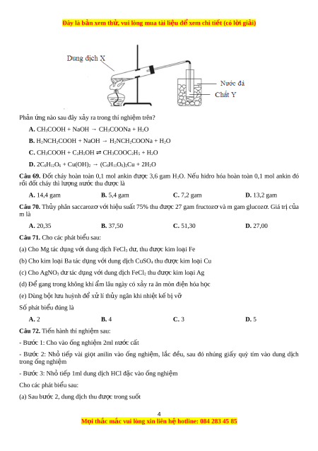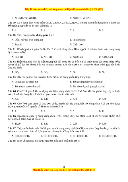 Đây là bản xem th , vu ử i lòng mua tài li u ệ đ xe ể m chi ti t ế (có l i ờ gi i ả ) C. NH4NO3 và Ca(OH)2 D. NaHCO3 và HNO3 Câu 59. Có 4 dung d c ị h riêng bi t