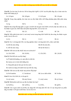 Câu 50: Trong công nghi p, ệ kim lo i ạ nào sau đây đư c ợ đi u ề chế b ng ằ phư ng ơ pháp đi n ệ phân nóng chảy? A. Ag. B. Fe. C. Cu. D. Na. Câu 51: Đun nóng h n ỗ h p ợ g m ồ 2,3 gam C2H5OH v i