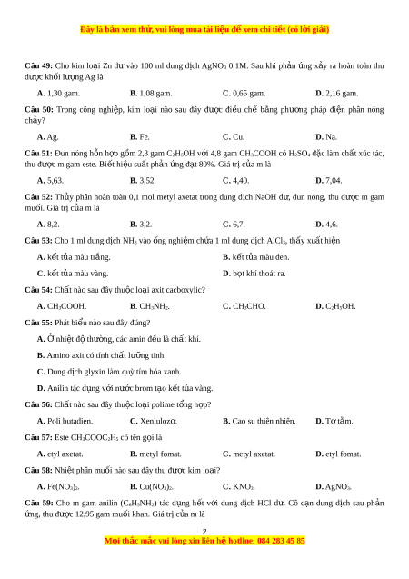 Đây là bản xem th , vu ử i lòng mua tài li u ệ đ xe ể m chi ti t ế (có l i ờ gi i ả ) Câu 49: Cho kim lo i