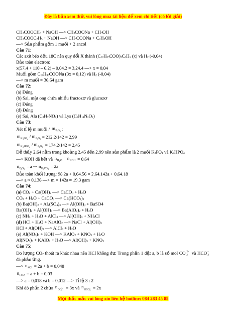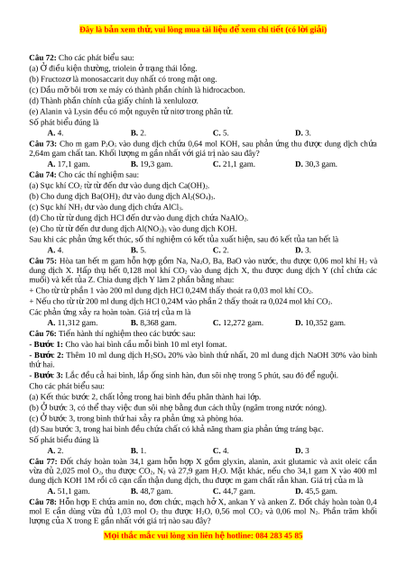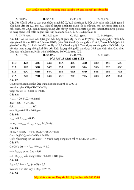 Đây là bản xem th , vu ử i lòng mua tài li u ệ đ xe ể m chi ti t ế (có l i ờ gi i ả ) A. 30,3 %. B. 32,7 %. C. 36,2 %. D. 28,2 %. Câu 79: H n ỗ E g m ồ ba axit đ n ơ ch c ứ , m c