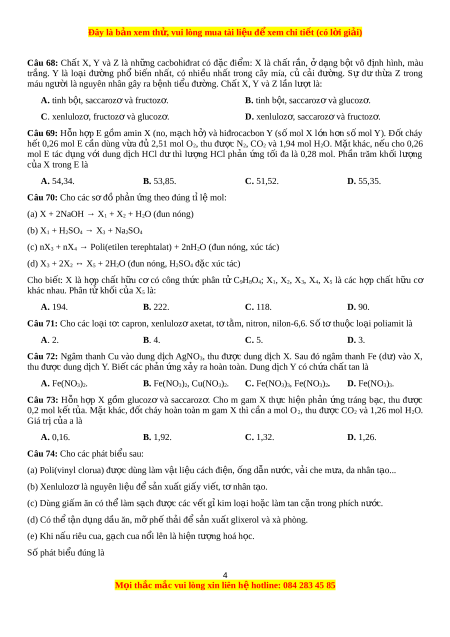 Đây là bản xem th , vu ử i lòng mua tài li u ệ đ xe ể m chi ti t ế (có l i ờ gi i ả ) A. xenluloz . ơ B. protein. C. tinh b t ộ . D. glucoz . ơ