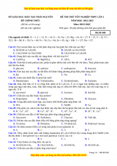 ĐỀ THI THỬ TỐT NGHIỆP THPT LẦN 1 ĐỀ CHÍNH THỨC NĂM HỌC 2022-2023