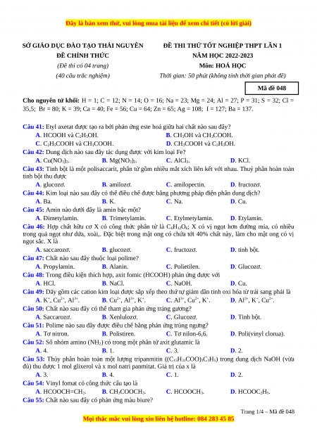 Câu 55: Chất nào sau đây có phản ứng màu biure? Trang 1/4 – Mã đề 048