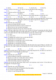 Câu 49: Dãy gồm các cation kim loại được sắp xếp theo thứ tự giảm dần tinh oxi hóa từ trái sang phải là