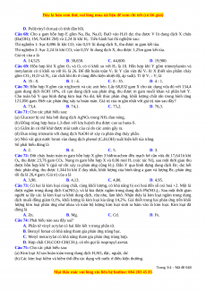 Câu 46: Hợp chất hữu cơ X có công thức phân tử là C6H12O6; X có vị ngọt hơn đường mía, có nhiều