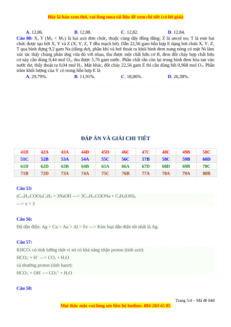 Câu 80: X, Y (M