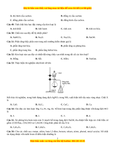 Câu 50: Chất nào sau đây d b ễ nhi ị t ệ phân? A. NaHCO3. B. Na2O. C. Na2CO3. D. NaOH. Câu 51: Phản ng t ứ h y