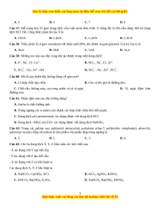 Câu 62: Trong các polime sau: poli(metyl metacrylat); polistiren; nilon-7; poli(etylen- terephtalat); nilon-6,6; poli(vinyl axetat), t ng ổ s pol ố ime là s n ph ả m ẩ c a ủ ph n ả ng t ứ rùng ng ng l ư à A. 5. B. 2. C. 3. D. 4.