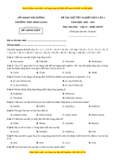 Đề thi thử Hóa Học trường Bình Giang lần 1 năm 2021