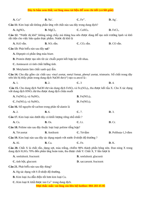Đây là bản xem th , vu ử i lòng mua tài li u ệ đ xe ể m chi ti t ế (có l i ờ gi i ả ) A. Cu2+ B. Na+. C. Fe2+. D. Ag+.