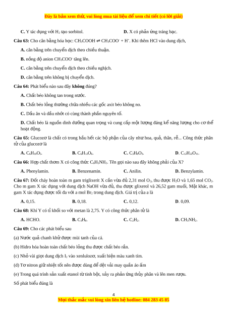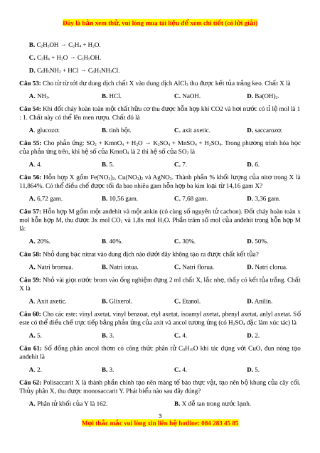 Đây là bản xem th , vu ử i lòng mua tài li u ệ đ xe ể m chi ti t ế (có l i ờ gi i ả ) C. Y tác d ng ụ v i ớ H2 tạo sorbitol. D. X có phản ng ứ tráng bạc.