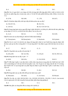 Câu 65: Glucozơ là chất có trong h u ầ h t ế các bộ ph n ậ c a ủ cây như hoa, qu , ả thân, r ... ễ Công th c ứ phân tử c a ủ glucozơ là A. C6H10O5. B. C6H12O6. C. C3H8O3. D. C12H22O11. Câu 66: H p c ợ hất th m ơ X có công th c ứ C6H5NH2. Tên g i