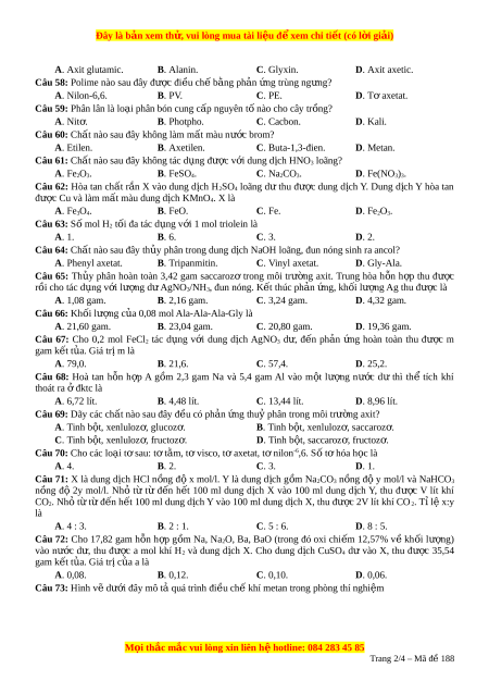 A. Phenyl axetat. B. Tripanmitin. C. Vinyl axetat. D. Gly-Ala. Câu 65: Th y