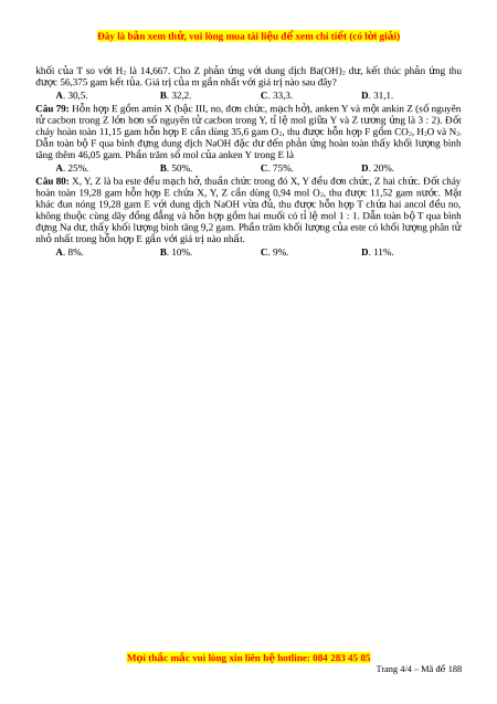 ệ otline: 084 283 45 85 Trang 3/4 – Mã đ ề 188