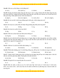 Câu 46. Trong các kim loại kiềm sau, kim loại có nhi t ệ đ nóng c ộ h y l ả n nh ớ ất là A. Li. B. Na. C. Rb. D. Cs.