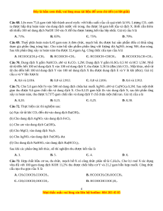 Câu 69. Thuỷ phân hoàn toàn 6,45 gam este A đ n ơ ch c ứ , m c ạ h h , ở thu đư c ợ hai s n ả ph m ẩ đ u ề có kh ả năng tham gia phản ng ứ tráng b c ạ . Cho toàn bộ s n ả ph m ẩ ph n ả ng ứ v i ớ lư ng