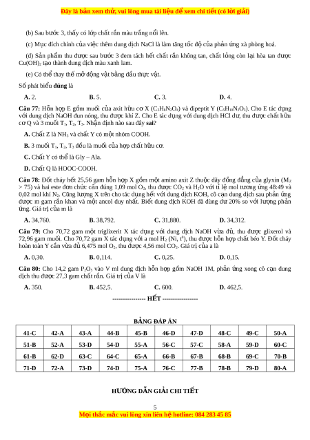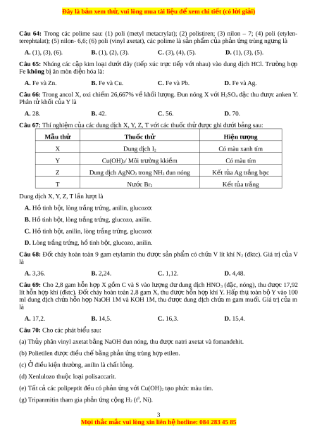 Đây là bản xem th , vu ử i lòng mua tài li u ệ đ xe ể m chi ti t ế (có l i ờ gi i ả ) S phá ố t biểu đúng là A. 5. B. 4. C. 3. D. 2. Câu 71: Đ t