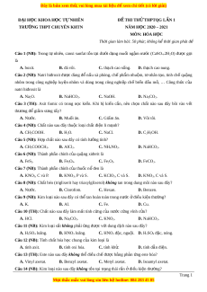 TRƯỜNG THPT CHUYÊN KHTN NĂM H C Ọ 2020 – 2021 MÔN: HÓA H C Ọ Th i