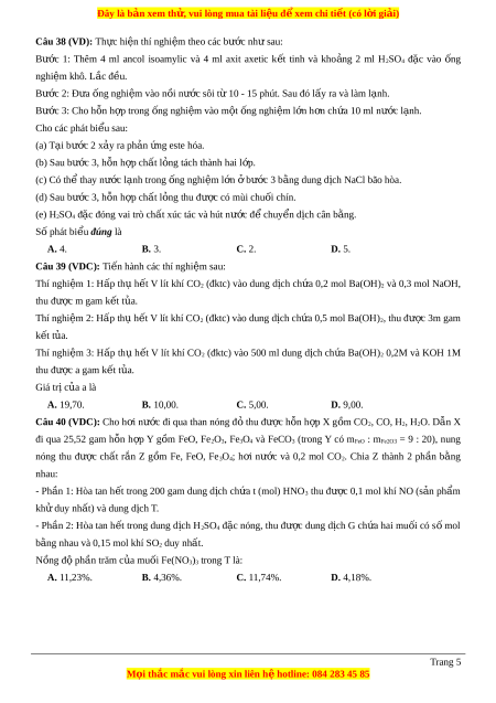 Câu 39 (VDC): Ti n hành các thí nghi m sau:ế ệ