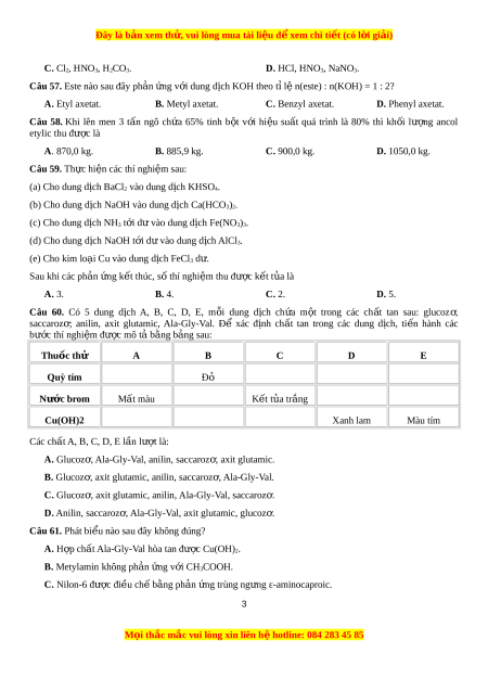 Đây là bản xem th , vu ử i lòng mua tài li u ệ đ xe ể m chi ti t ế (có l i ờ gi i ả ) C. Cl2, HNO3, H2CO3. D. HCl, HNO3, NaNO3.