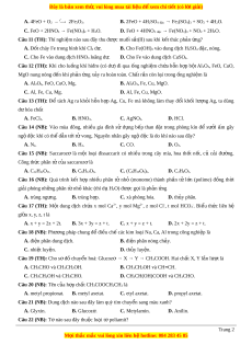 D. Nhúng thanh Fe vào dung d c ị h CuSO4 và H2SO4 loãng. Câu 26 (TH): Dãy g m ồ các dung d c ị h đ u t ề ham gia phản ng ứ tráng b c ạ là A. fructoz , ơ glixerol, anđehit axetic. B. glucoz ,