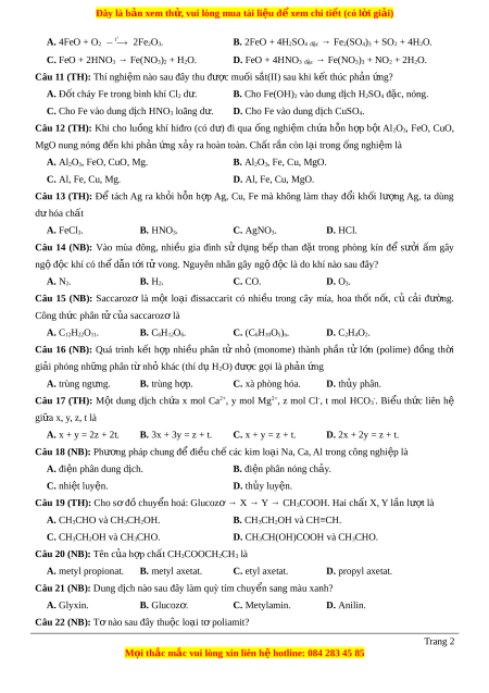 Đây là bản xem th , vu ử i lòng mua tài li u ệ đ xe ể m chi ti t ế (có l i ờ gi i ả ) A. 4FeO + O2 t 2Fe2O3.