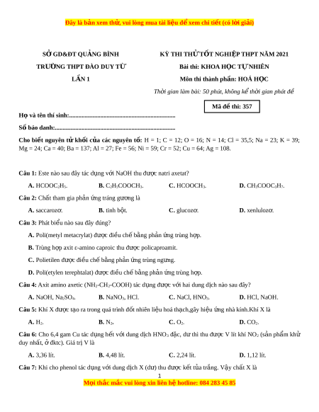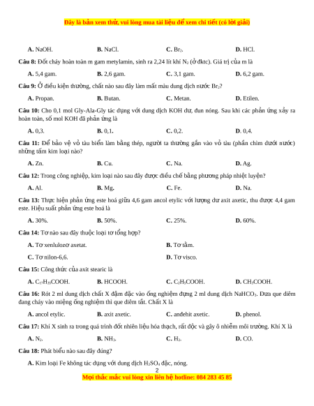 Đây là bản xem th , vu ử i lòng mua tài li u ệ đ xe ể m chi ti t ế (có l i ờ gi i ả ) A. NaOH.