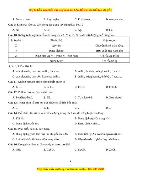 Đây là bản xem th , vu ử i lòng mua tài li u ệ đ xe ể m chi ti t ế (có l i ờ gi i ả ) A. Metyl axetat. B. Axyl etylat. C. Etyl axetat. D. Axetyletylat.
