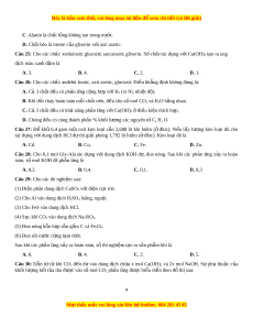 Câu 7: Đá vôi có thành phần chính là A. Fe(NO3)3. B. CaCO3. C. CuSO4. D. Ca(HCO3)2. Câu 8: Phản ng e ứ ste hoá gi a