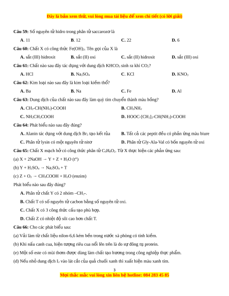 Đây là bản xem th , vu ử i lòng mua tài li u ệ đ xe ể m chi ti t ế (có l i ờ gi i ả ) Câu 59: S nguyê ố n tử hidro trong phân t s ử accarozơ là A. 11 B. 12 C. 22 D. 6