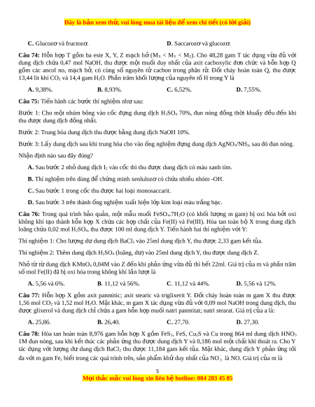 Đây là bản xem th , vu ử i lòng mua tài li u ệ đ xe ể m chi ti t ế (có l i ờ gi i ả ) Câu 49: Cho vào ng ố nghi m ệ 3 – 4 gi t ọ dung d c
