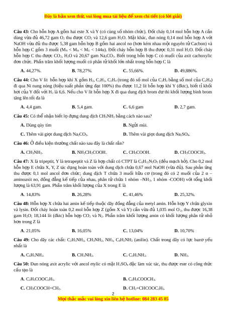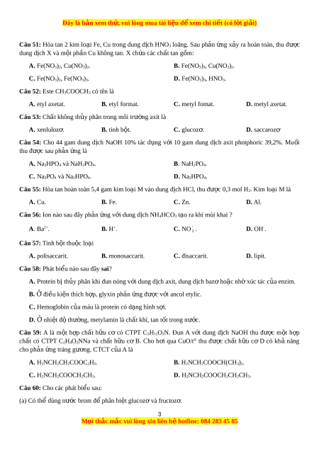 Đây là bản xem th , vu ử i lòng mua tài li u ệ đ xe ể m chi ti t ế (có l i ờ gi i ả ) Câu 43: Cho h n ỗ h p ợ A g m