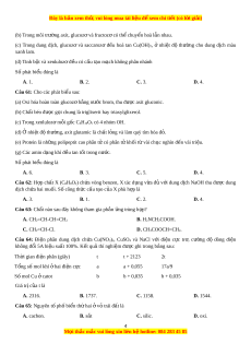 ị h AgNO3 trong NH3 (phản ng ứ tráng b c ạ ) theo các bư c ớ sau: Bư c ớ 1: Cho 1 ml dung d c ị h AgNO3 1% vào ng nghi ố m ệ sạch. Bư c ớ 2: Nh t ỏ ừ t dung d ừ c ị h NH3 cho đ n khi ế k t ế t a ủ tan h t ế . Bư c ớ 3: Thêm 3 - 5 gi t ọ glucozơ vào ng ố nghi m ệ . Bư c ớ 4: Đun nóng nh h ẹ n h ỗ p ợ 60 - 70°C t ở rong vài phút. Cho các nhận đ nh s ị au: (a) b Ở ư c ớ 4, glucozơ b oxi ị hóa tạo thành mu i ố amoni gluconat. (b) Kết thúc thí nghi m ệ thấy thành ng ố nghi m ệ sáng bóng như gư ng. ơ (c) Ở thí nghi m ệ trên, n u ế thay glucozơ b ng ằ fructozơ ho c ặ saccarozơ thì đ u ề thu đư c ợ k t ế quả tư ng ơ t . ự (d) Thí nghi m ệ trên ch ng ứ tỏ glucozơ là h p ợ ch t ấ t p ạ ch c ứ , phân t ử ch a ứ nhi u ề nhóm OH và m t ộ nhóm CHO. S nh ố ận đ nh đúng l ị à A. 1. B. 4. C. 3. D. 2. Câu 42: H n ỗ h p ợ M g m
