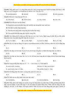 Câu 63: Chất nào sau đây không tham gia ph n ả ng t ứ rùng h p? ợ A. CH2=CH-CH=CH2 B. H2NCH2COOH. C. CH2=CH-Cl. D. CH3COOCH=CH2. Câu 64: Đi n ệ phân dung d c ị h ch a