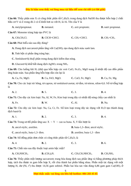Câu 66: Th y phân este X có công th c phân t Củ ứ ử
