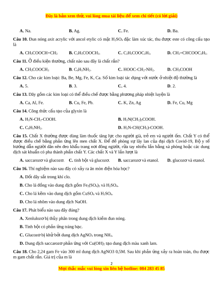 Đây là bản xem th , vu ử i lòng mua tài li u ệ đ xe ể m chi ti t ế (có l i ờ gi i ả ) A. Na. B. Ag. C. Fe. D. Ba.