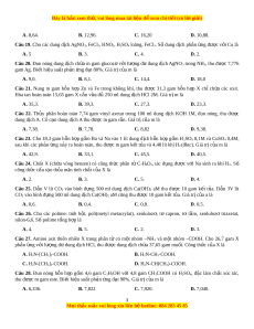 ồ các kim loại có thể đi u c ề h đ ế ư c ợ bằng phư ng ơ pháp nhi t ệ luy n l ệ à A. Ca, Al, Fe. B. Cu, Fe, Pb. C. K, Zn, Ag D. Fe, Cu, Mg Câu 14. Công th c ứ cấu tạo c a ủ glyxin là A. H2N-CH2-COOH. B. H2N(CH2)2COOH. C. C6H5NH2. D. H2N-CH(CH3)-COOH.