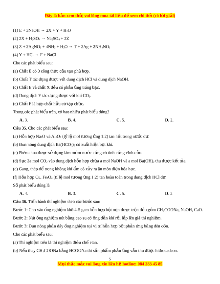 Đây là bản xem th , vu ử i lòng mua tài li u ệ đ xe ể m chi ti t ế (có l i ờ gi i ả ) Câu 29. Th c ự hiện các thi nghi m ệ sau: (a) Đun nóng dung d c ị h Ca(HCO3)2. (b) Nhi t
