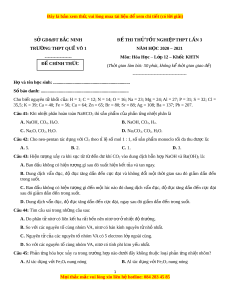 Đây là bản xem th , vu ử i lòng mua tài li u ệ đ xe ể m chi ti t ế (có l i ờ gi i ả ) SỞ GD&ĐT B C Ắ NINH Đ Ề THI TH Ử TỐT NGHI P Ệ THPT L N Ầ 3 TRƯ N Ờ G THPT QU Ế VÕ 1 NĂM H C Ọ 2020 – 2021 ------------------ Môn: Hóa H c ọ – L p ớ 12 – Kh i ố : KHTN Đ C Ề HÍNH TH C Ứ (Th i
