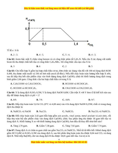 Đây là bản xem th , vu ử i lòng mua tài li u ệ đ xe ể m chi ti t ế (có l i ờ gi i ả ) Tỉ l a ệ : b là A. 2 : 3. B. 4 : 5. C. 5 : 4. D. 4 : 3. Câu 62: Amin bậc m t ộ X ch a