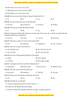 Câu 48: Kim loại nào sau đây không tác d ng v ụ i ớ dung dịch FeCl3? A. Cu B. Zn C. Ag D. Fe Câu 49: T nà ơ o sau đây thu c ộ loại t bá ơ n t ng h ổ p? ợ A. T vi ơ sco B. Tơ nilon-6,6 C. T ni ơ tron D. T t ơ ằm