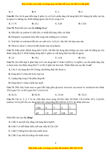 Câu 69: Cho 24,16 gam h n ỗ h p ợ X g m ồ Cu và Fe3O4 phản ng ứ v i ớ dung d c ị h HCl loãng d , ư th y ấ còn l i ạ 6,4 gam Cu không tan. Kh i ố lư ng ợ (gam) c a ủ Fe3O4 trong X là A. 17,76 B. 23,2 C. 9,28 D. 13,92 Câu 70: Phát bi u nà ể
