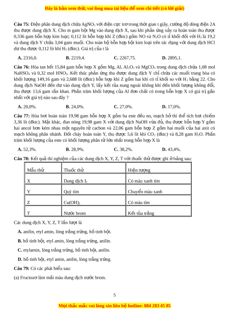 ị h CuSO4 2%, sau đó lắc nh , t ẹ hấy ng ố nghi m ệ xuất hi n m ệ àu tím đ c ặ tr ng. Ch ư t ấ X là A. Triolein B. Glucozơ C. Lòng trắng tr ng ứ D. Glixerol Câu 60: Đ t