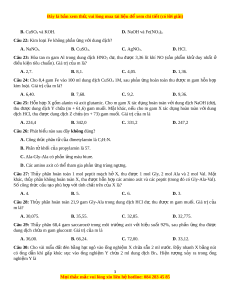 Câu 24: Cho 8,4 gam Fe vào 100 ml dung d c ị h CuSO4 1M, sau ph n ả ng ứ hoàn toàn thu đư c ợ m gam h n ỗ h p ợ kim loại. Giá trị c a ủ m là? A. 6,40. B. 7,68. C. 9,2. D. 9,36. Câu 25: H n h ỗ p X ợ g m
