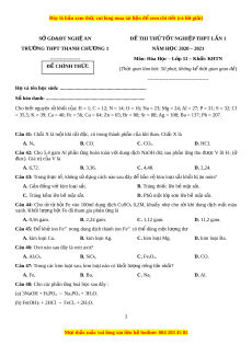 Đề thi thử Hóa Học trường Thanh Chương 1 năm 2021