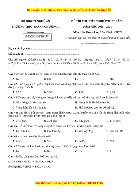 - Tailieugiaovien.com.vn giới thiệu Đề thi thử Hóa Học trường Thanh Chương 1 năm 2021 bản word có lời giải chi tiết.