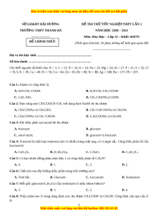 Đề thi thử Hóa Học trường Thanh Hà lần 1 năm 2021