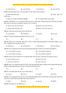 ị h glucozơ và saccarozơ đều có tính chất hoá h c ọ chung là A. Phản ng t ứ huỷ phân. B. Phản ng ứ v i ớ nư c ớ brom. C. Hòa tan Cu(OH)2 nhi ở ệt đ t ộ h ng. ƣờ D. Có v ng ị t ọ , d t ễ an trong n c ƣớ . Câu 10: Chất h u ữ cơ X có công th c ứ phân tử C5H6O4. Th y ủ phân X b ng ằ dung d c ị h NaOH d , ư thu đư c ợ m t ộ mu i ố và m t ộ ancol. Công th c ứ c u t ấ o c ạ a ủ X có thể là