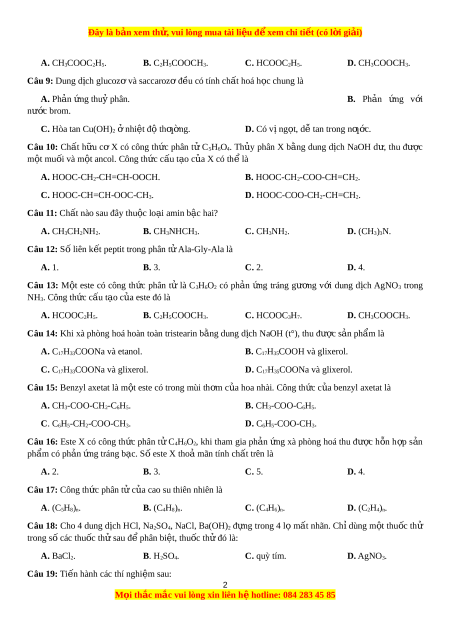 Đây là bản xem th , vu ử i lòng mua tài li u ệ đ xe ể m chi ti t ế (có l i ờ gi i ả ) A. CH3COOC2H5. B. C2H5COOCH3. C. HCOOC2H5. D. CH3COOCH3. Câu 9: Dung d c