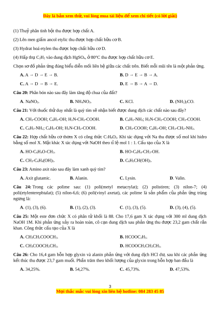 Đây là bản xem th , vu ử i lòng mua tài li u ệ đ xe ể m chi ti t ế (có l i ờ gi i ả ) (1) Thuỷ phân tinh b t ộ thu đư c ợ h p c ợ h t ấ A.